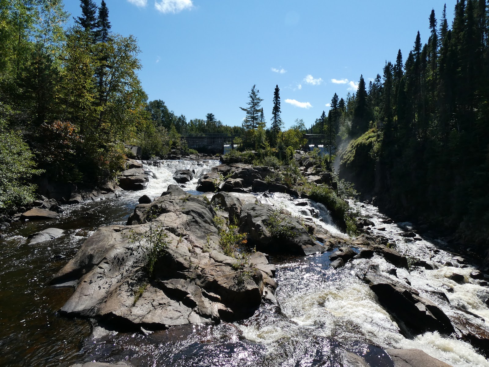 Nous commençons par une randonnée dans le canyon de la Rivière-à-Mars où nous essayons de voir les saumons venus frayer. Dany, grâce à son regard perçant, en aperçoit un.