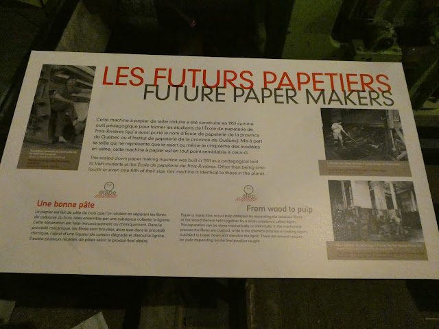Nous arrivons à Boréalis, un Centre d'histoire de l'industrie papetière. Devant celui-ci, quelques sculptures et photos attirent mon attention.