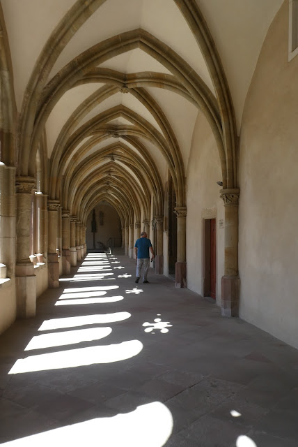 nous atteignons l'église Notre-Dame (Liebfrauenkirche), la plus ancienne église gothique d'Allemagne (1235-1260). Son plan est fondé sur la croix grecque, la tour au-dessus du dôme soulignant l'intersection des nefs. Le portail ouest est richement décoré de sculptures. L'intérieur recèle de magnifiques fresques du 15e siècle peintes sur douze colonnes et symbolisant les apôtres.