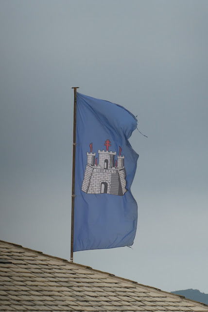 et nous passons près du bastion de l'Etendard qui domine le goulet de Bonifacio, puis près de la colonne romaine. Nous pénétrons dans la vieille ville par le tunnel creusé sous le fort Saint Nicolas.