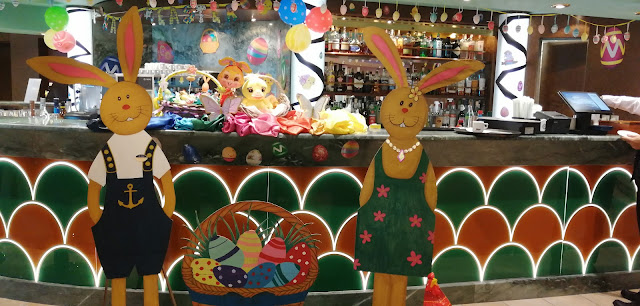 Le soir, nous fêtons Pâques avec un très bon repas composé de coquilles Saint-Jacques et fruits de mer, d'un gigot d'agneau et d'un dessert, le tout arrosé d'un verre de chianti blanc pétillant offert par le Commandant.