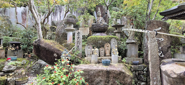 Nous avons adoré ce merveilleux temple. Nous avons pris le temps d'admirer les 500 statues Rakan, disciple d’un des 13 bouddhas de la secte Shingon, enfin presque....😀😅. Mais surtout, nous avons apprécié le calme des lieux, alors que plus bas, il y a un monde fou. Ici, pas de foule...